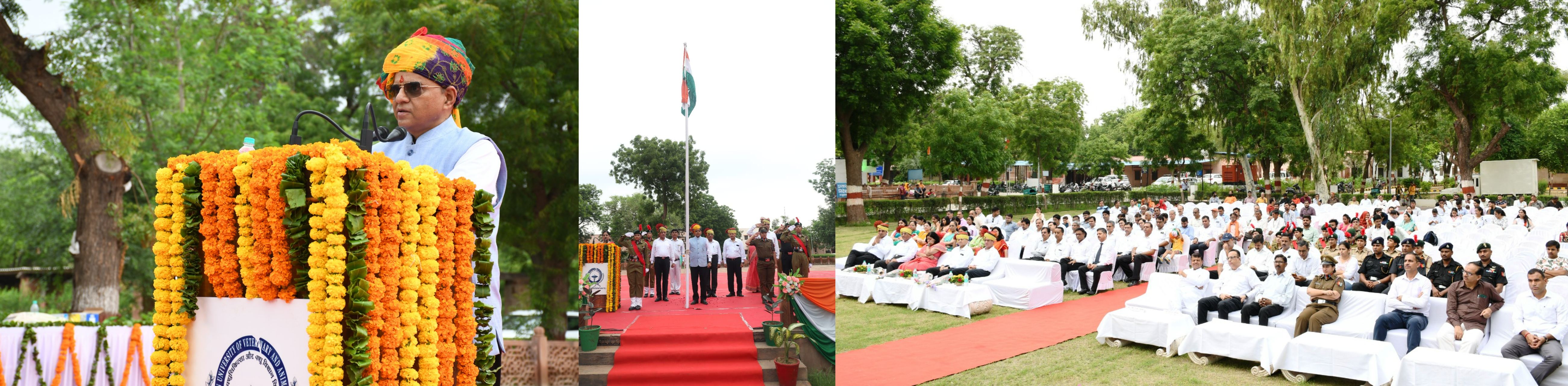 स्वाधीनता दिवस के 79वें पर्व पर वेटरनरी विश्वविद्यालय के कुलगुरु आचार्य मनोज दीक्षित ने ध्वजारोहण कर सलामी दी