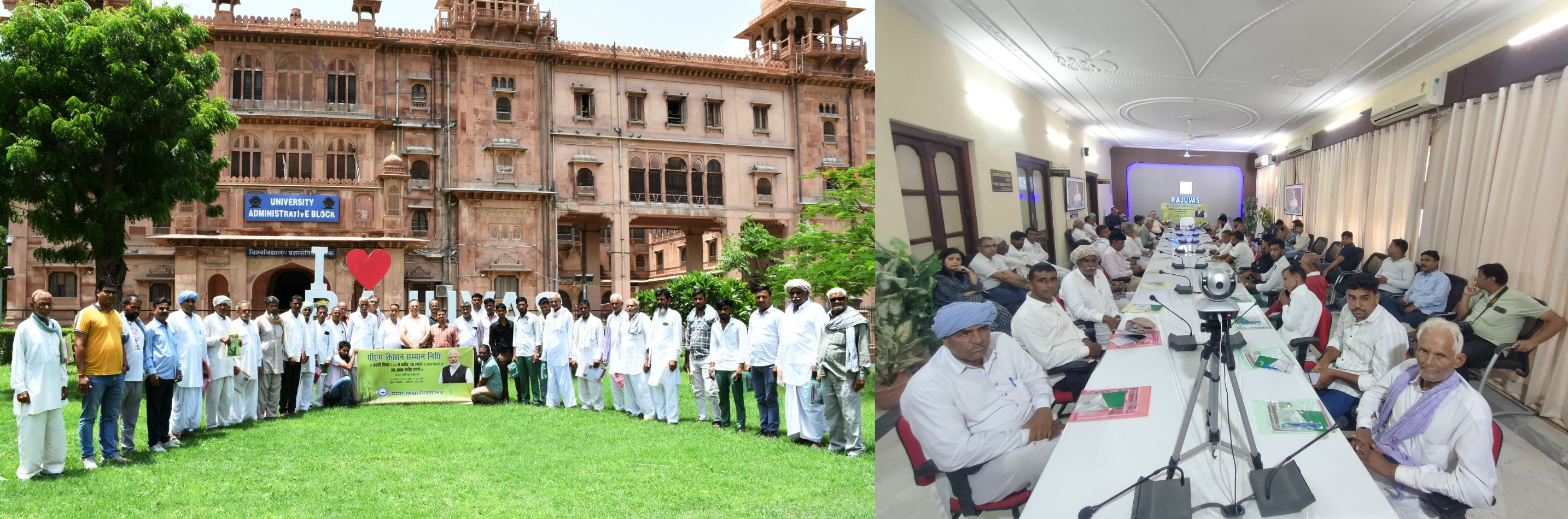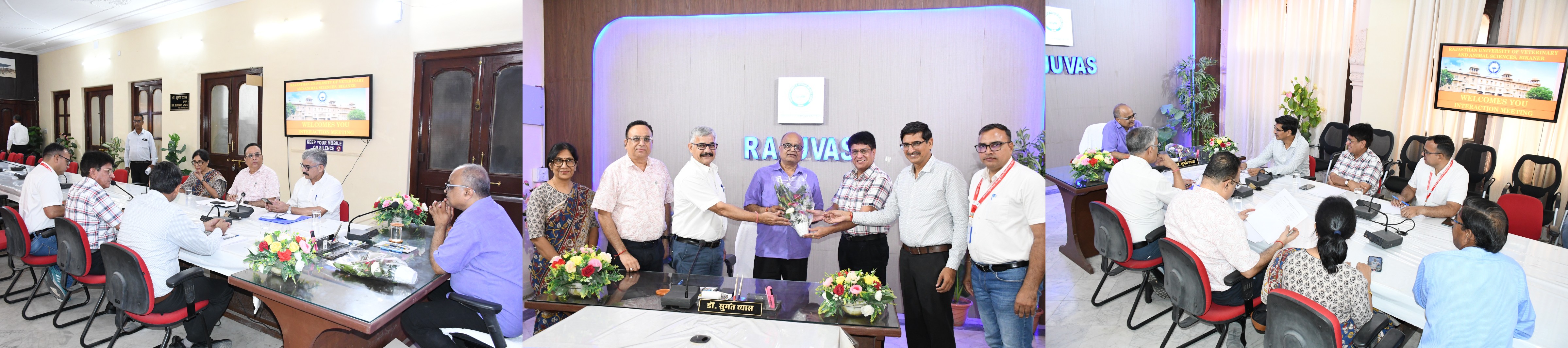 माननीय मंत्री श्री जोराराम जी कुलपति एवं अधिकारियों के साथ विश्वविद्यालय की वर्तमान स्थिति, भविष्य की योजनाओं एवं विकास के संभावित क्षेत्रों पर चर्चा।