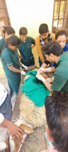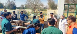 बीकानेर 15 फरवरी। वेटरनरी विश्वविद्यालय, बीकानेर एवं पशुपालन विभाग, बीकानेर के संयुक्त तत्वावधान में राज्य सरकार की 100 दिन की कार्य योजना के अंतर्गत गुरूवार को छतरगढ़ में पशुचिकित्सा शिविर का आयोजन किया गया। निदेशक क्लिनिक डॉ. प्रवीन बिश्नोई ने बताया कि पशुचिकित्सा शिविर के माध्यम से पशु पालकों को उनके गांव में ही रोगग्रस्त पशुओं के ईलाज की सुविधा मिल पा रही है। शिविर के दौरान कुल 227 पशुओं को ईलाज किया गया जिसमें से 206 पशुओं को कुपोषण एवं अन्तः परजीवियों से बचाव हेतु मिनरल मिक्सचर एवं कृमिनाशक दवा दी गई। एक भेड़ में सिजेरियन प्रक्रिया द्वारा प्रसव भी कराया गया। शिविर के दौरान पशुपालन विभाग के संयुक्त निदेशक डॉ. एस.पी. जोशी एवं वरिष्ठ पशुचिकित्सक डॉ. संदीप खरे उपस्थित रहे। शिविर के आयोजन में पशुचिकित्सा एवं पशु विज्ञान महाविद्यालय, बीकानेर के डॉ. संदीप धौलपुरिया, डॉ. अभिषेक गुप्ता, डॉ. रिचा चौरसिया, डॉ. कपिल कच्छावा, डॉ. सुमनिल मारवाह, डॉ. देवेन्द्र कुमार, पशुपालन विभाग, बीकानेर के डॉ. चन्द्रा कंवर, डॉ. गुलजार परिहार, डॉ. आकांशा माथुर व पी.जी. एवं इर्न्टस विद्यार्थियों ने अपनी सेवाएं प्रदान की।