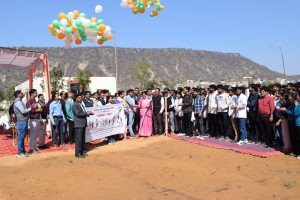 जयपुर, 04 मार्च। स्नातकोत्तर पशुचिकित्सा शिक्षा एवं अनुसंधान संस्थान (पी.जी.आई.वी.ई.आर.), जयपुर में 4-7 मार्च, 2024 तक आयोजित होने वाले खेलकूद एवं सांस्कृतिक सप्ताह ’’उमंग-2024’’ का सोमवार को संस्थान के खेल मैदान में रंगारंग शुभारंभ किया गया। संस्थान की अधिष्ठाता प्रो. शीला चौधरी ने फीता काटकर तथा आसमान में गुब्बारे छोड़कर इस कार्यक्रम का आगाज किया। विद्यार्थियों को सम्बोधित करते हुए अधिष्ठाता महोदया ने खेल-कूद को हमारे जीवन के लिये अति महत्वपूर्ण बताया। उन्होंने कहा कि इससे हमारा शारीरिक व मानसिक विकास होता है। खेल हमें जीवन में अनुशासन, भाई-चारा, कड़ी मेहनत, टीम भावना, धैर्य आदि का कुछ अच्छे गुण सीखने में मदद करते हैं। आगे उन्होंने बताया कि खेल के सभी रूप हमें सीखाते हैं कि जीवन के हर खेल को जीतने या हारने के पहलू पर जोर ना देने के बजाय भाग लेने व मनोरंजन के उद्देश्य से खेला जाना चाहिए। उन्होंने आशा जताई की ज्यादा से ज्यादा विद्यार्थी इस कार्यक्रम में भागीदारी कर इस सप्ताह को सफल बनायेंगे। संस्थान के खेल-कूद प्रभारी डॉ. सत्यवीर सिंह ने सप्ताह भर आयोजित होने वाले विभिन्न स्पर्धाओं की विस्तार से जानकारी दी। उन्होंने बताया कि खेल-कूद में रस्सा-कस्सी, बॉलीवॉल, कबड्डी, बैडमिन्टन, टेबल-टेनिस, एथेलेटिक्स आदि की स्पर्धाएं आयोजित की जायेगी। सांस्कृतिक र्स्पधाओं में कोलाज, रंगोली, एकल तथा समूह नृत्य एवं एकल तथा समूह गीत आयोजित किये जायेंगे। साहित्यिक र्स्पधाओं में वाद-विवाद, प्रश्नोत्तरी तथा एक्टेम्पोर की प्रतियोगिताएं आयोजित की जायेंगी। संस्थान के कार्यवाहक सहायक अधिष्ठाता छात्र कल्याण डॉ. एस.एस. शेखावत ने सभी का धन्यवाद ज्ञापित किया तथा डॉ. बरखा गुप्ता ने मंच संचालन किया। इस कार्यक्रम में संस्थान के संकाय सदस्यों, अशैक्षणिक कर्मचारियों तथा विद्यार्थियों ने बड़ी संख्या में अपनी भागीदारी निभाई।